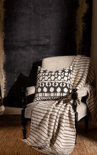 Description: Agnes is a hand woven cotton throw with charcoal fabric stripes. This beautiful piece is heavily washed to achieve a soft handfeel. The charcoal stripes add a rich and bold look to the throw, thus making living spaces look luxurious.