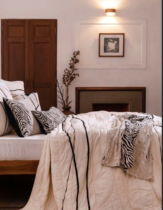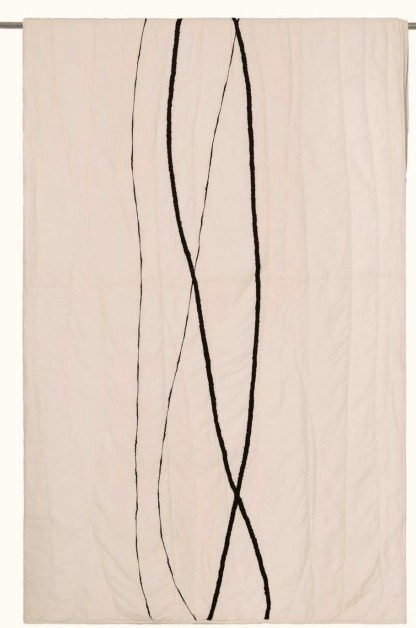Description: The Maputo quilt is an embroidered and soft quilt with hand kantha detailings on a natural cotton voile base. With the black cotton yarn in thick and thin free flowing lines, the embroidered quilt is a minimal yet a beautiful statement for beddings.