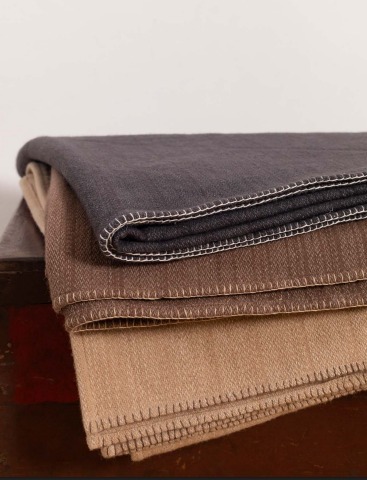 Description: Our Oran throw is a uniquely woven throw which is a blend of wool and recycled polyester. Its appearance lies in the self-stripe design created at the time of weaving, and is available in natural, charcoal, soil and taupe with hand embroidered blanket stitches given on the edges.